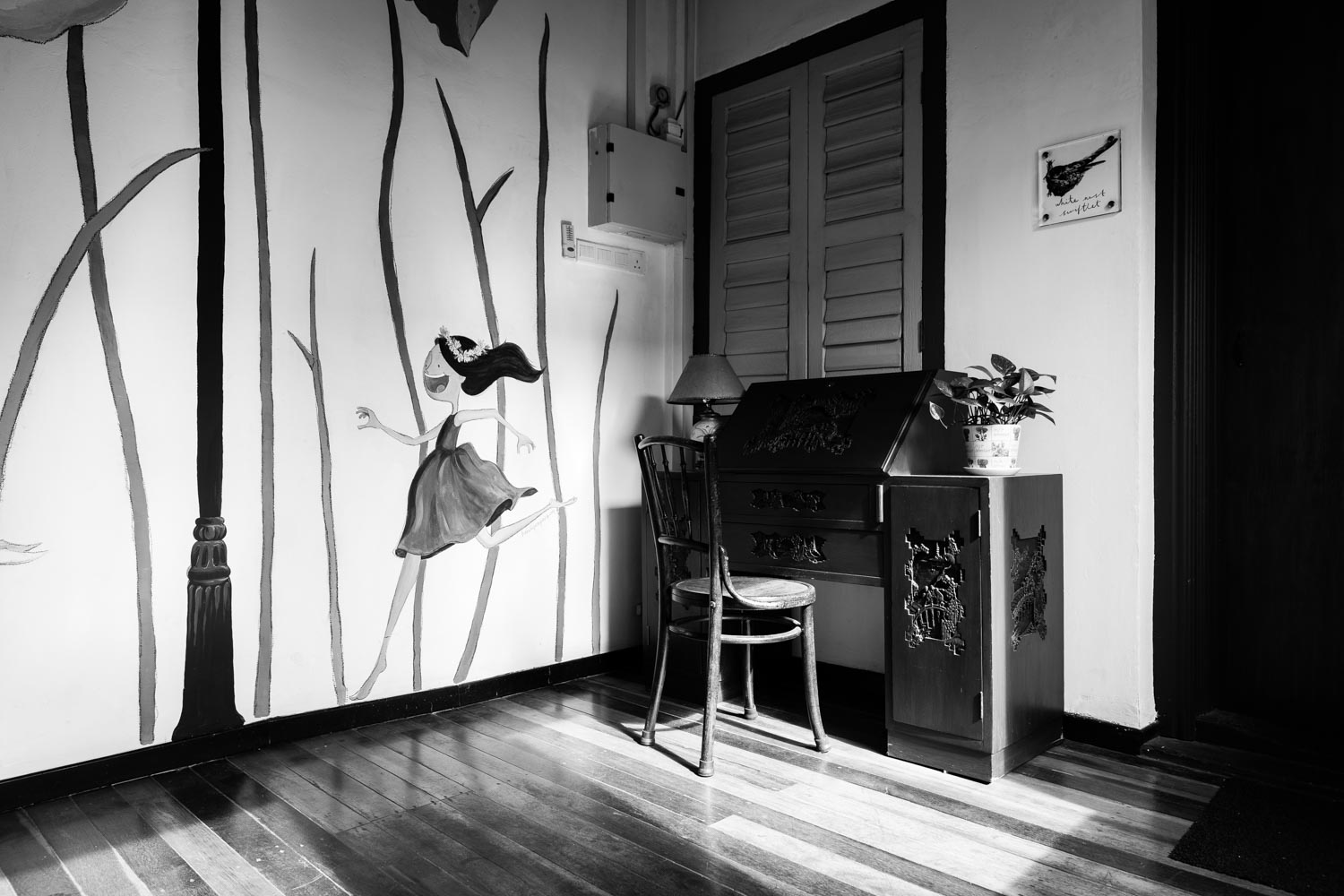 Sarang Paloh interior decoration. Mural and writing desk.