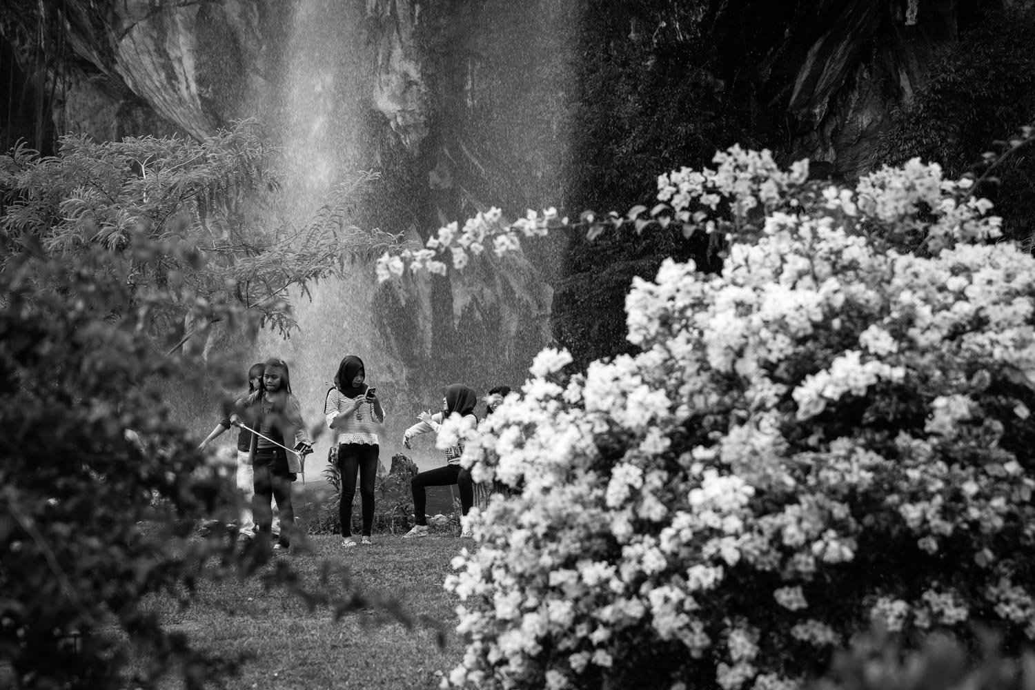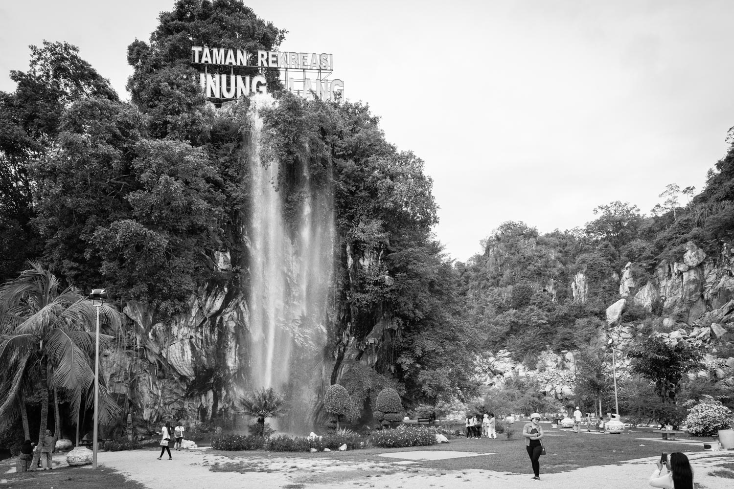 Posing for photos at Taman Rekreasi Gunung Lang man-made waterfall makes a stunning backdrop.